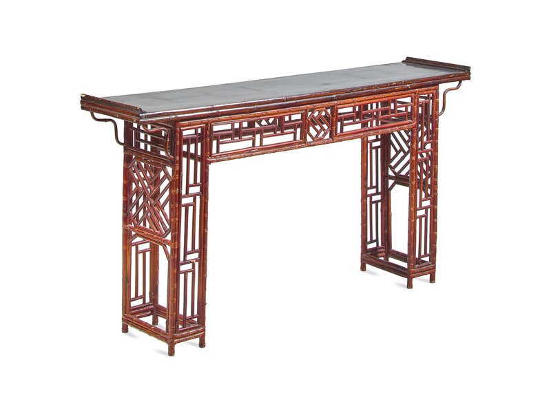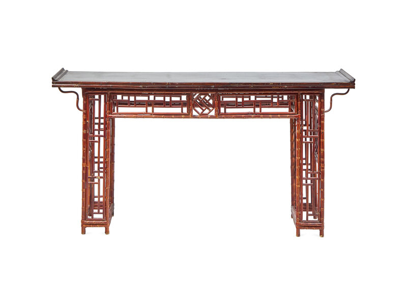 A Chinese Bamboo and Lacquered Wood Side Table, Qiaotou'an