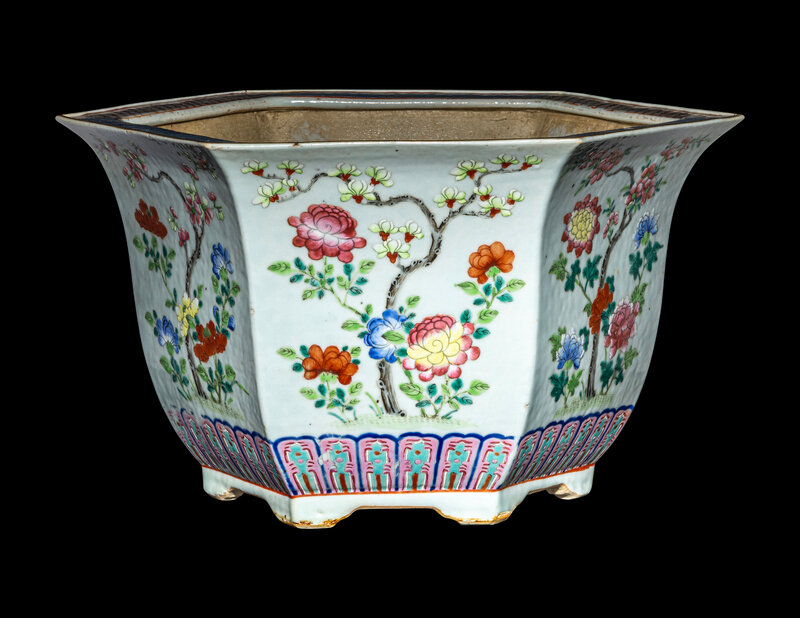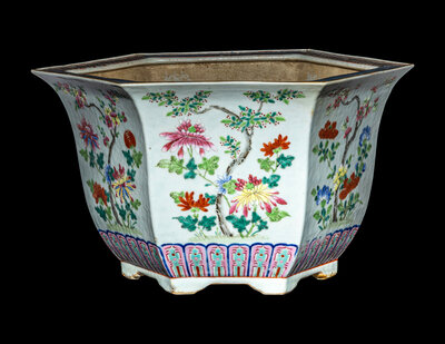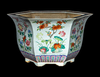 A Chinese Famille Rose Porcelain Hexagonal Planter