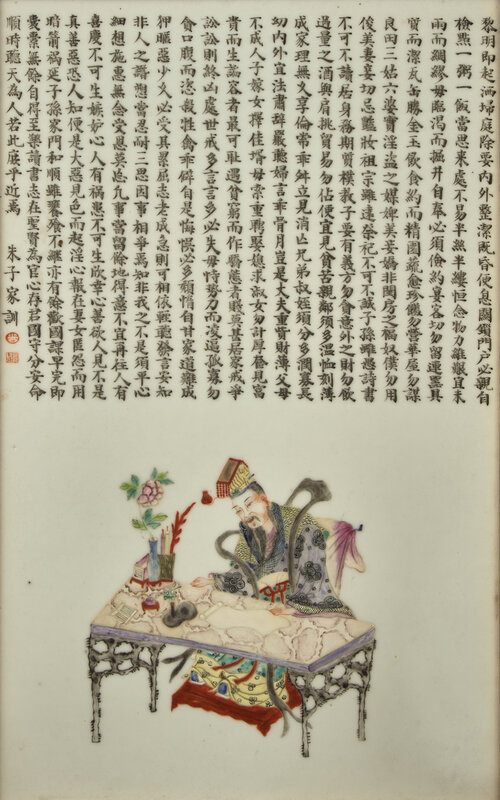 A Chinese Famille Rose "Zhuzi Jiaxun" Porcelain Plaque