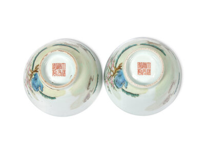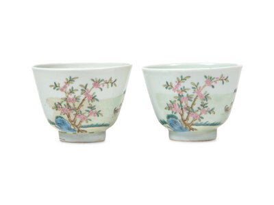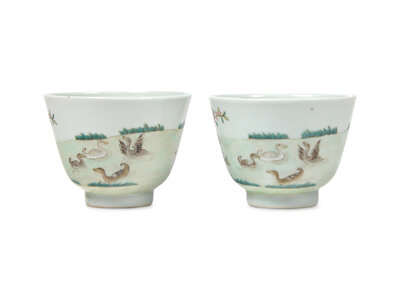 A Pair of Chinese Famille Rose "Ducks" Cups
