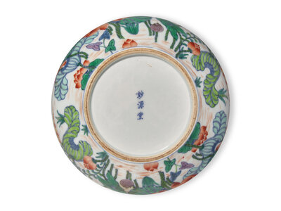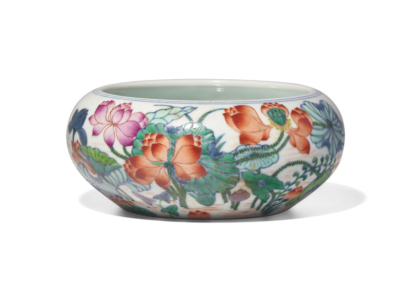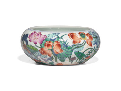 A Finely Decorated Famille Rose"Lotus Pond" Brush Washer, Miaoyuantang Mark