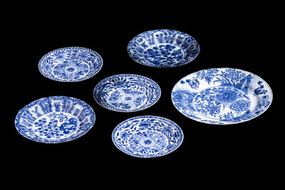 Six Chinese Export Blue and White Porcelain Plates and Saucers