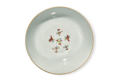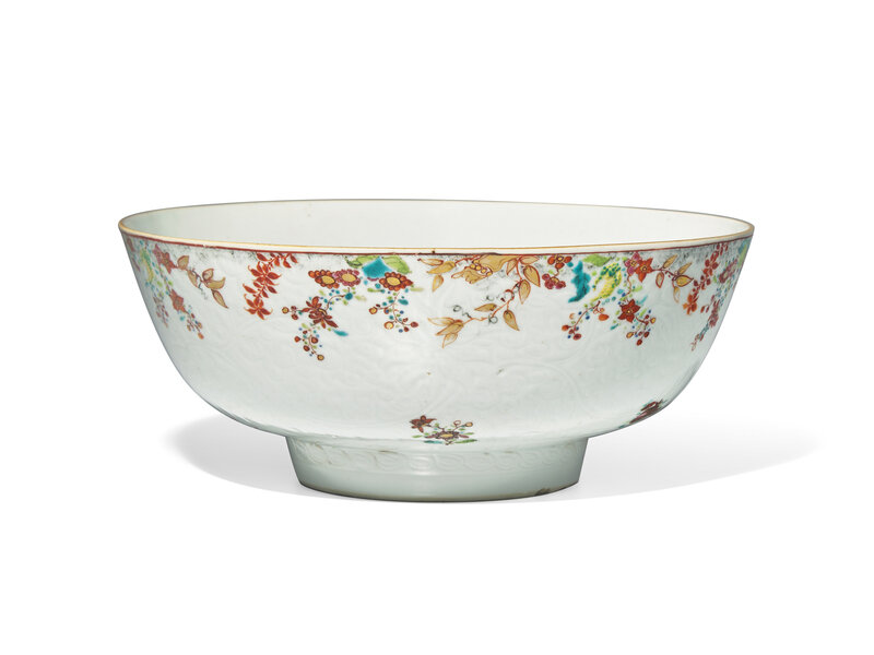 An Unusual Chinese Export Carved Famille Rose Porcelain Centerpiece Bowl, 18th Century