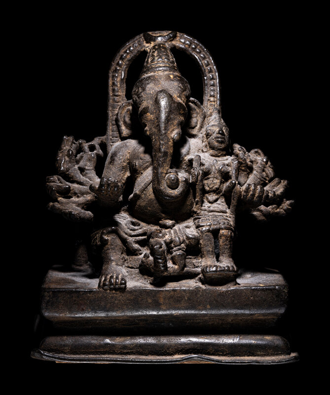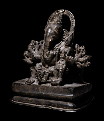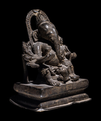 An Indian Bronze Figural Group of Ganesh and an Attendant