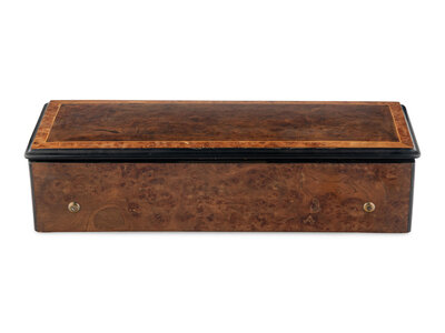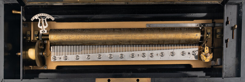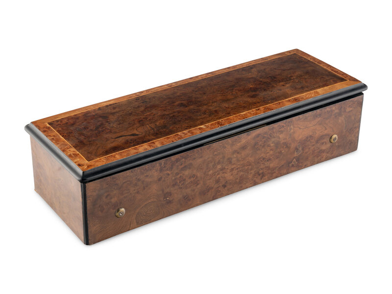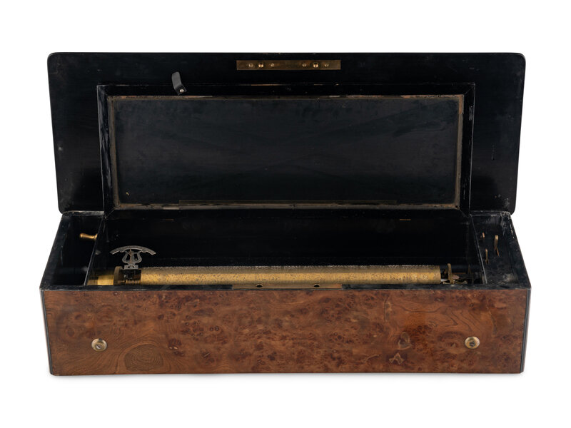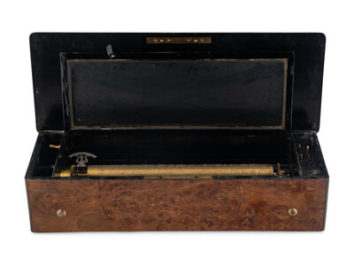 with a 19 inch cylinder, tune indicator and speed regulator, in a burl walnut case.