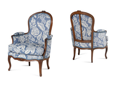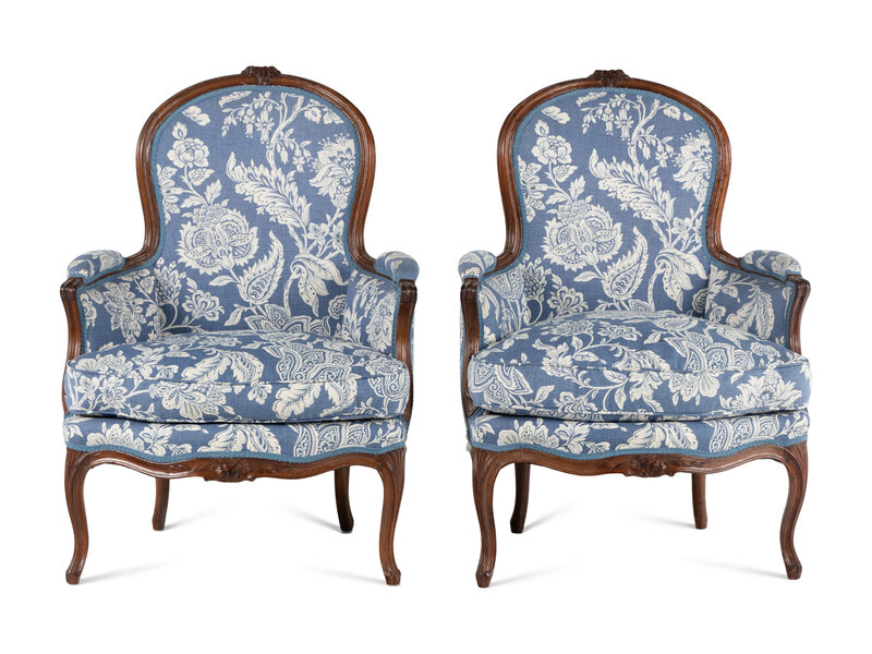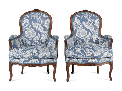 A Pair of Louis XV Walnut Bergères
