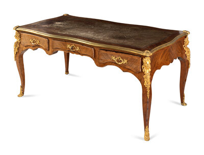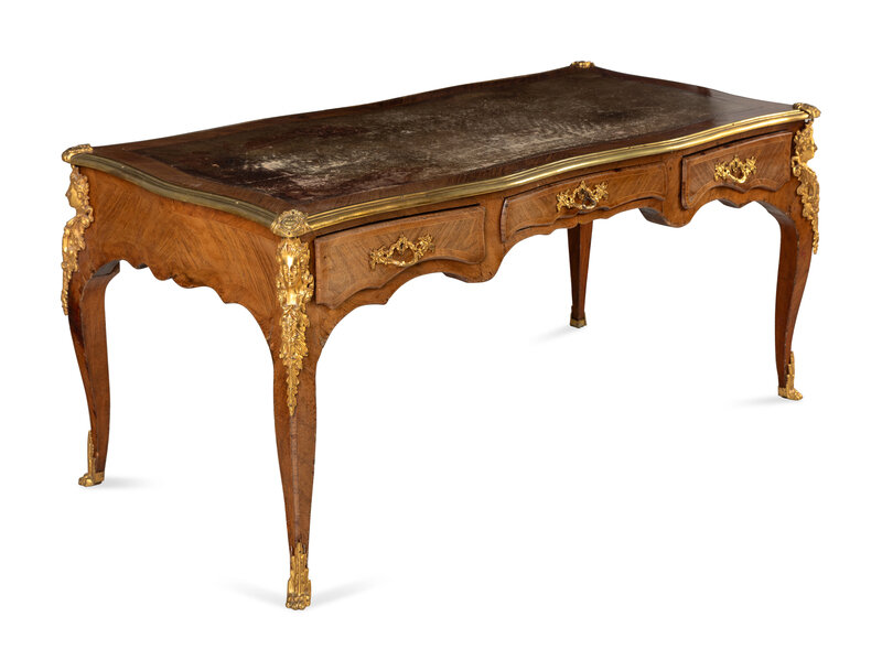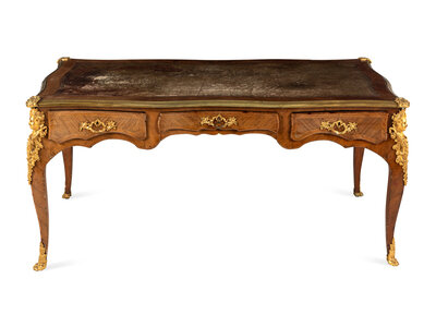 A Louis XV Style Gilt Bronze Mounted Kingwood Bureau Plat