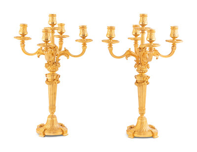 A Pair of Louis XVI Style Gilt Bronze Five-Light Candelabra