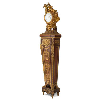 A Louis XVI Style Gilt Bronze Mounted Mahogany Pedestal Regulator Clock