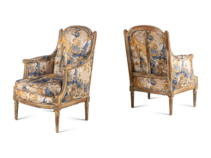 A Pair of Louis XVI Gray-Painted Bergères