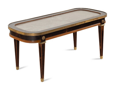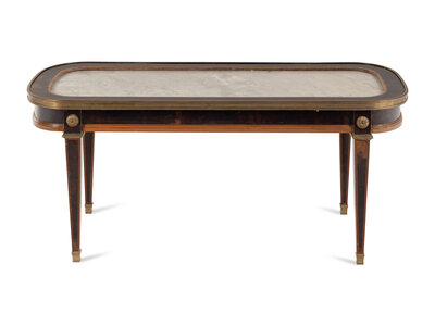 A Louis XVI Style Gilt Bronze Mounted Walnut and Marble-Inset Low Table