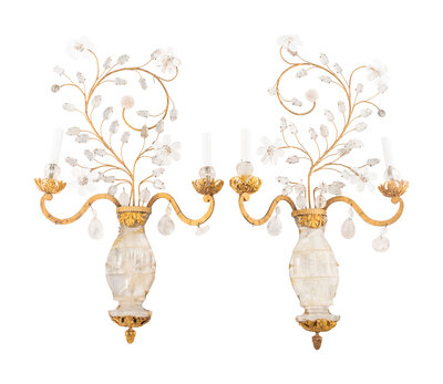 A Pair of Gilt Metal and Rock Crystal Sconces