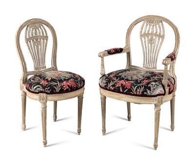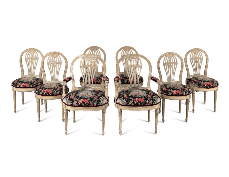 A Set of Eight French Gray-Painted "Montgolfier" Dining Chairs