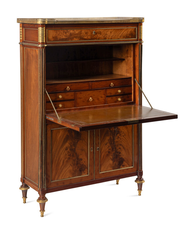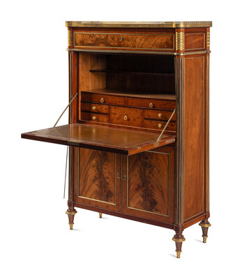 An Empire Style Gilt Bronze Mounted Mahogany Marble-Top Secrétaire à Abattant