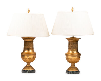 A Pair of Empire Style Gilt Bronze Urn-Form Vases