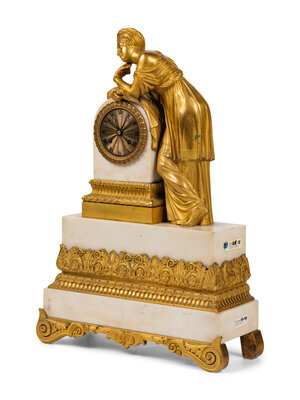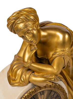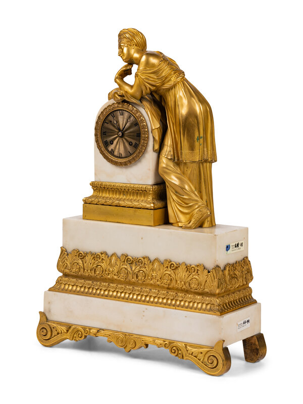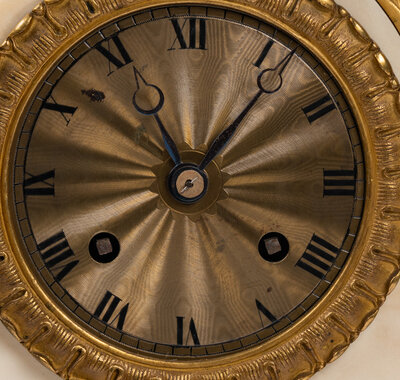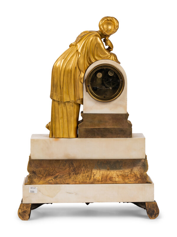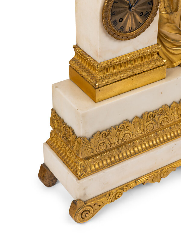A Louis Philippe Gilt Bronze and White Marble Mantel Clock