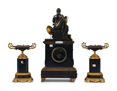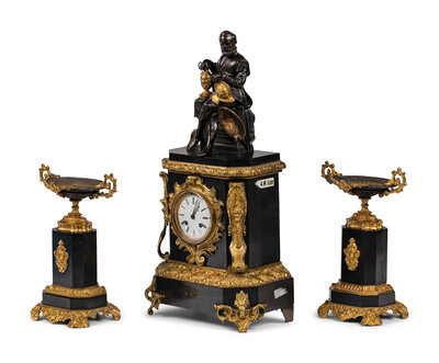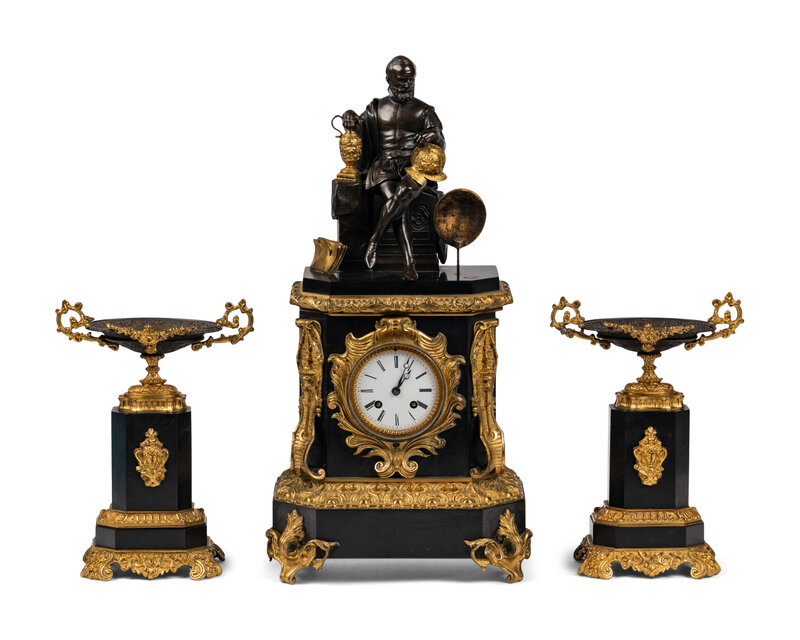 A Napoleon III Gilt Bronze and Slate Clock Garniture