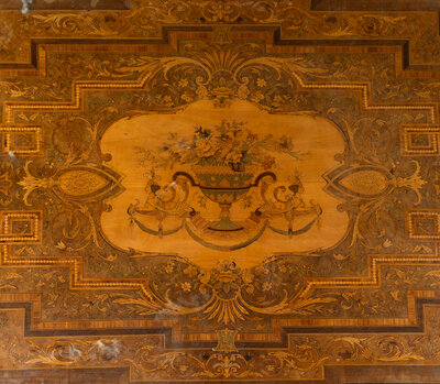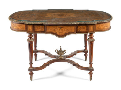 A Napoleon III Gilt Bronze Mounted Marquetry Center Table