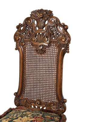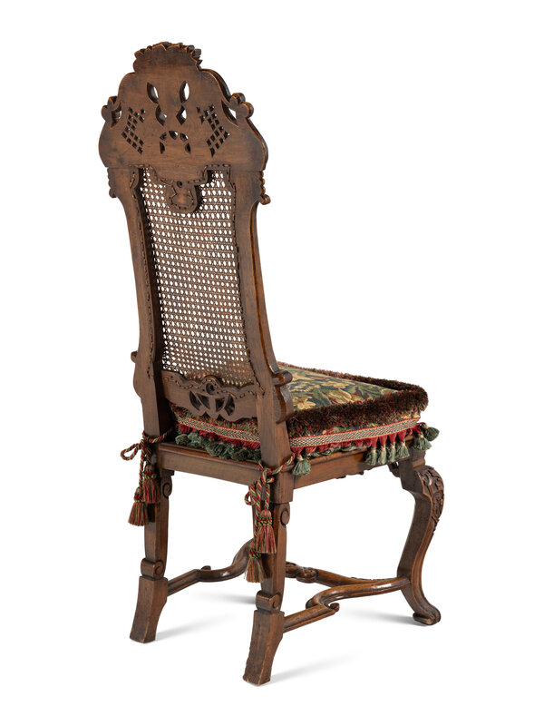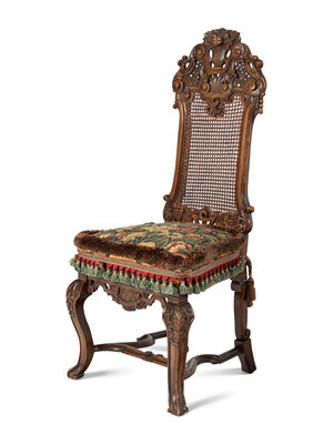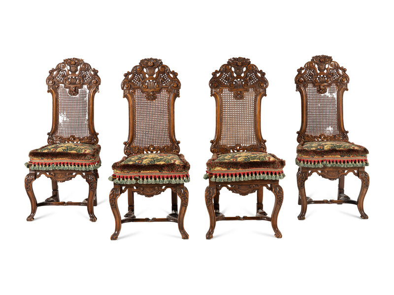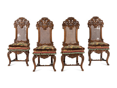 A Set of Four William and Mary Style Caned and Pierced-Carved Walnut Dining Chairs