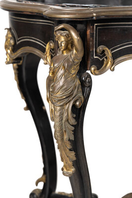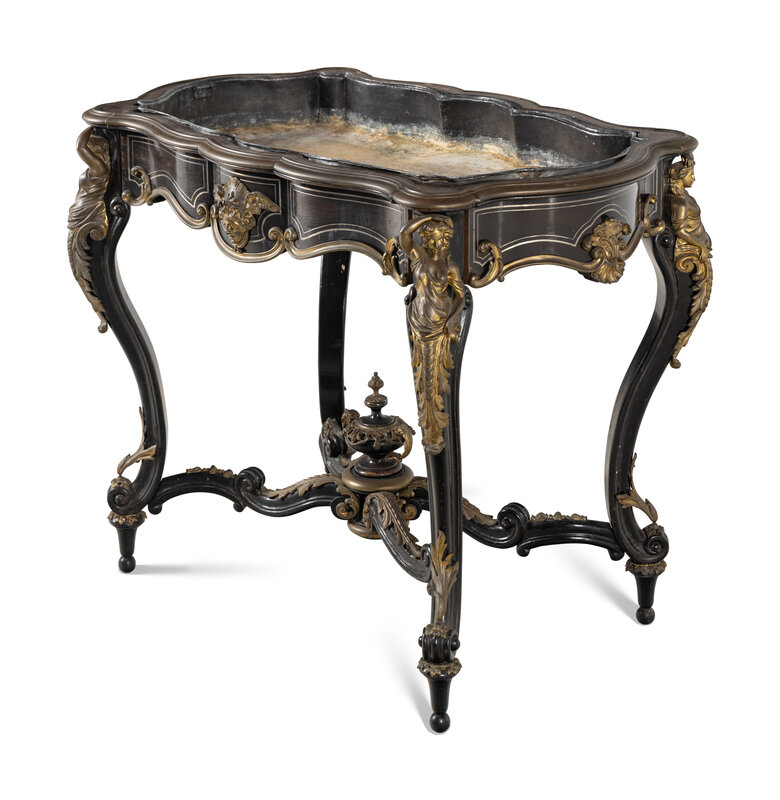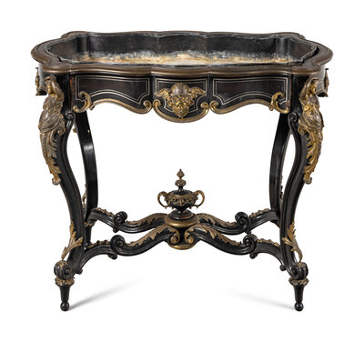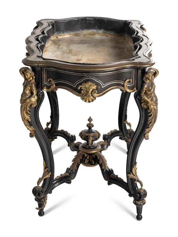 A Napoleon III Gilt Bronze Mounted Ebonized Jardinière Table