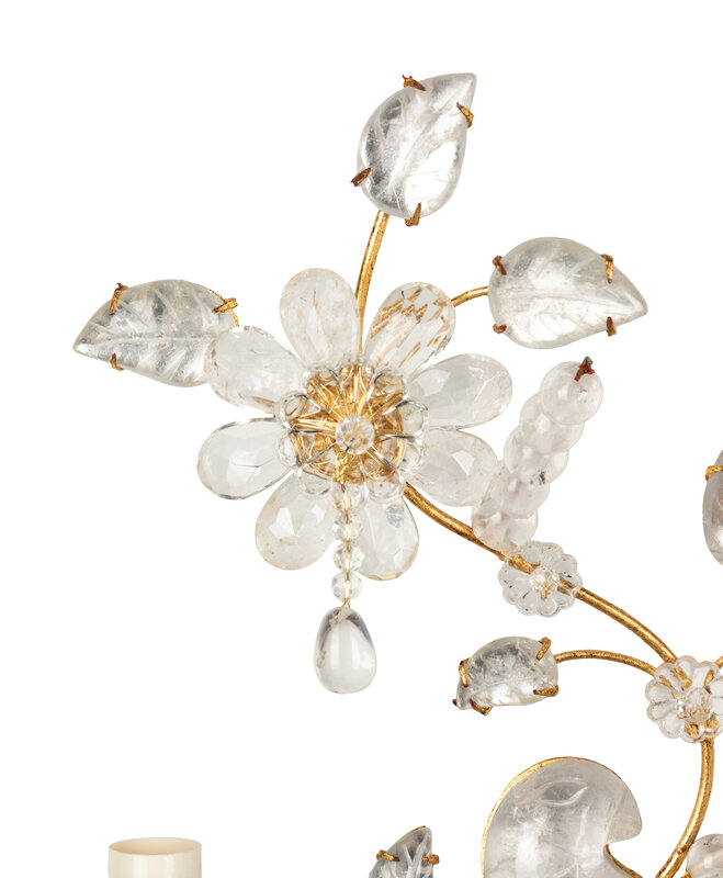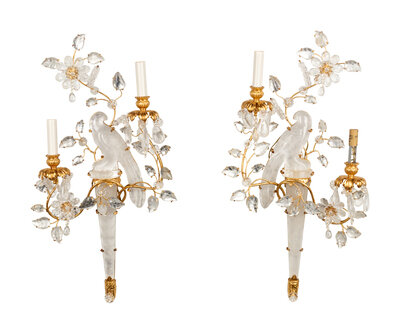 A Pair of Gilt Metal Mounted Rock Crystal Two-Light Sconces