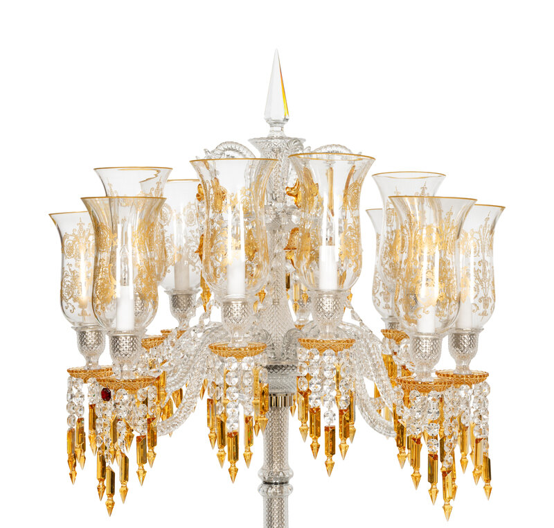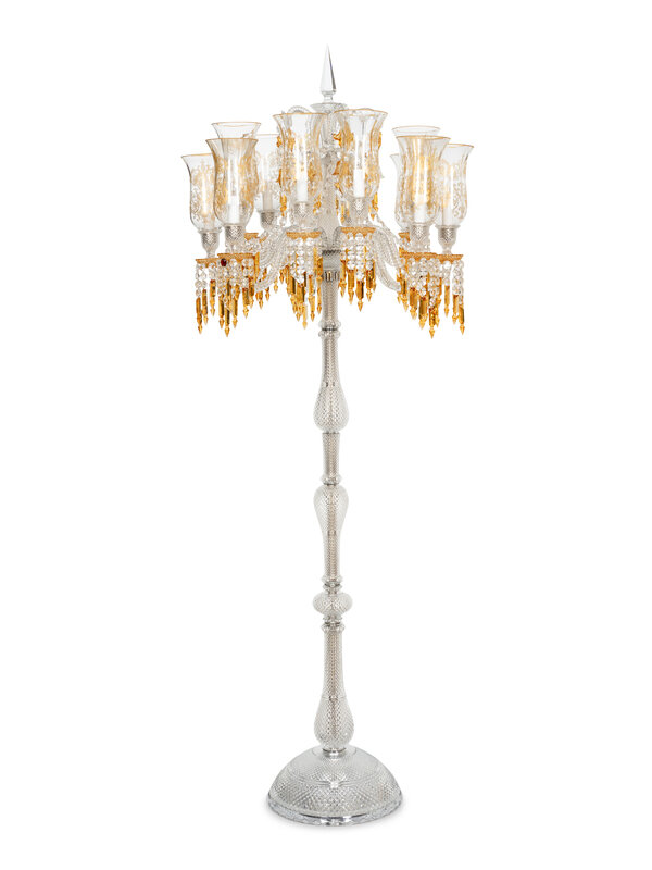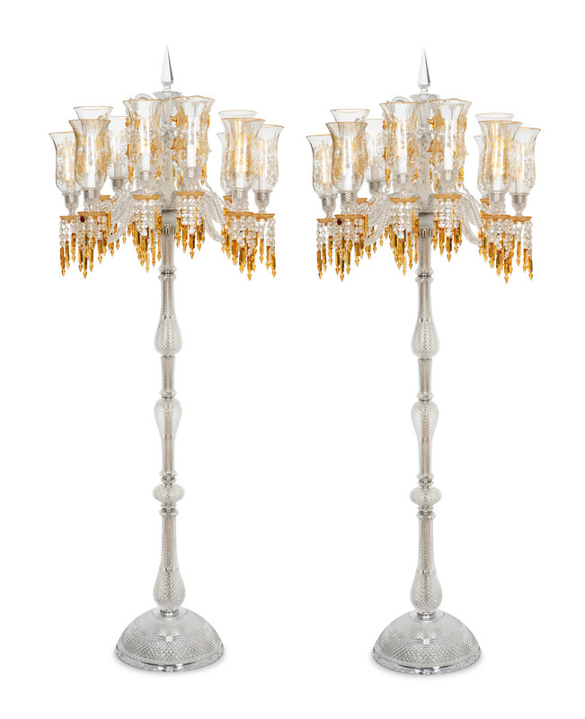 A Pair of Baccarat Zénith Clear and Amber Cut Glass Twelve-Light Torchères