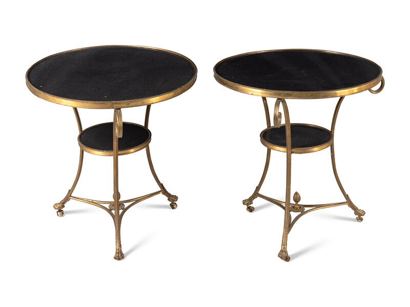 A Pair of French Gilt-Bronze and Black Marble Guéridons