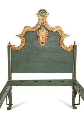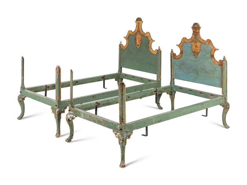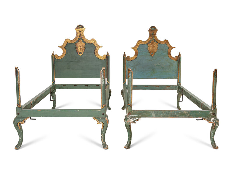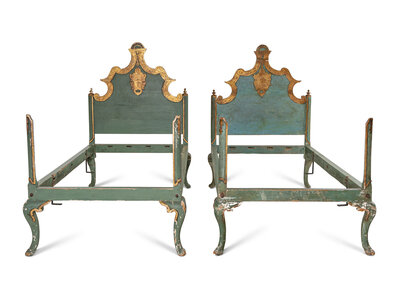 A Pair of Venetian Style Painted and Parcel Gilt Twin Beds