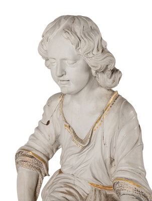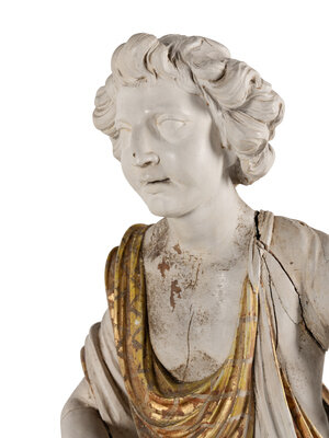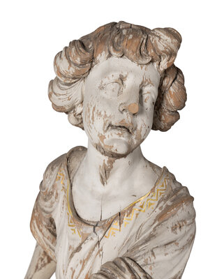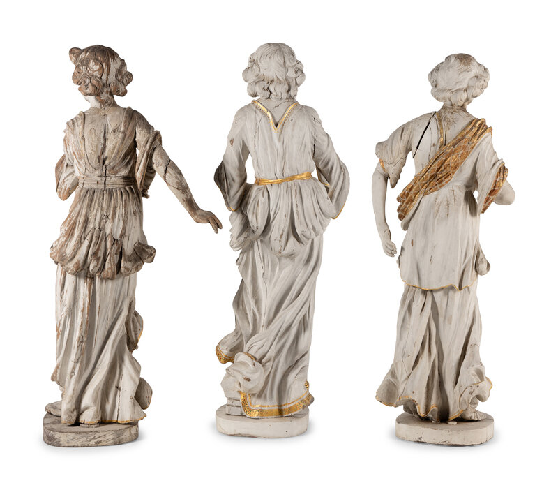 A Set of Three Carved, Painted and Parcel Gilt Wood Figures