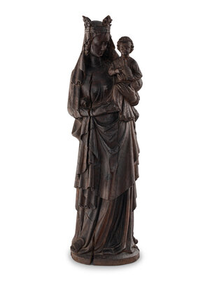 A Carved Oak Figural Group of the Madonna and Child