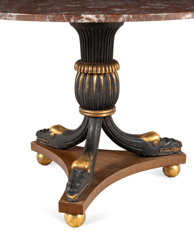 A Continental Neoclassical Style Painted and Parcel Gilt Marble-Top Center Table