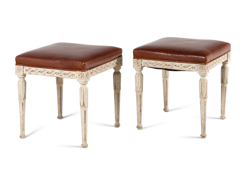A Pair of Gustavian Style Painted and Parcel Gilt Stools