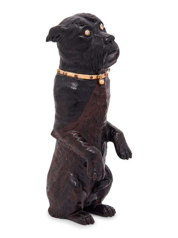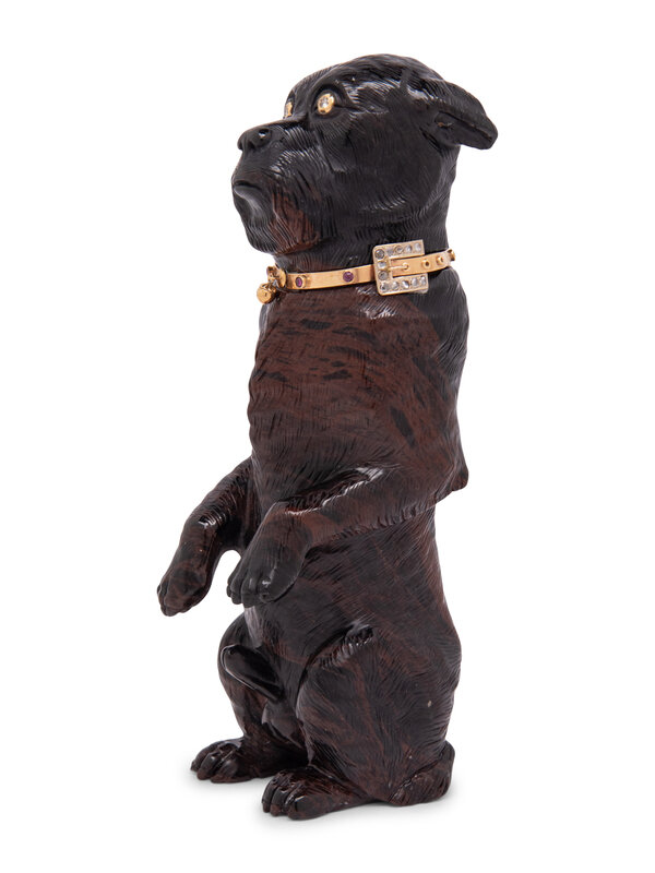 A Diamond and Ruby Inset Carved Hardstone Model of a Terrier