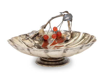 A Fabergé Silver, Parcel-Gilt and Hardstone Mounted Fruit Bowl
