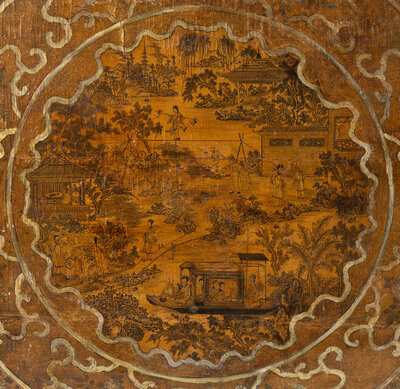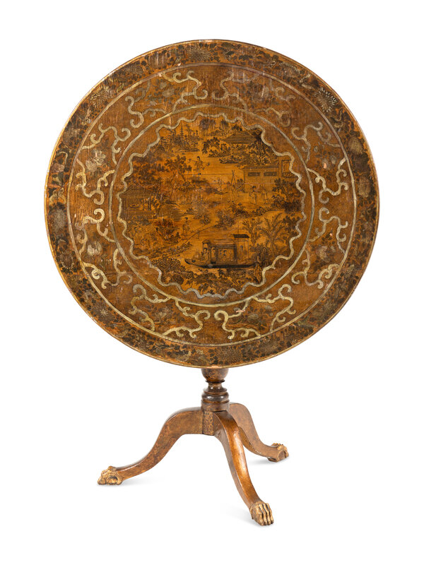 A Georgian Style Black and Gilt-Japanned Tea Table