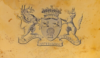 each engraved with the Cholmondeley family coat-of-arms surmounted with an Earl's coronet for George Chomondeley, 4th Earl of Cholmondeley (1749-1827).