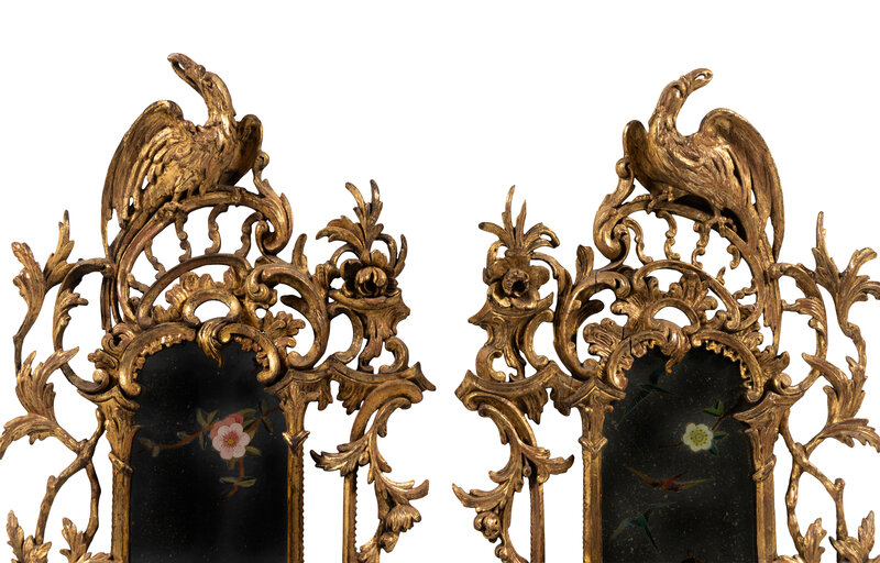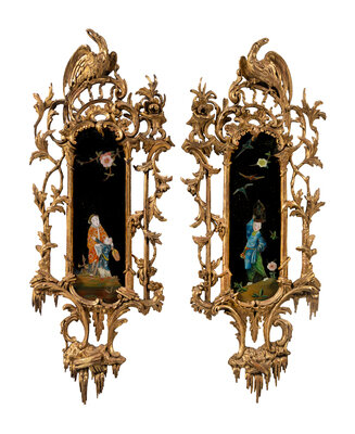 A Pair of George III Giltwood and Reverse-Painted Glass Mirrors