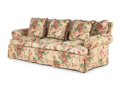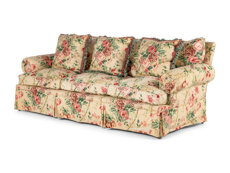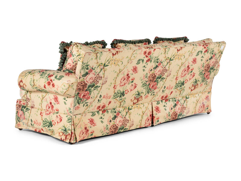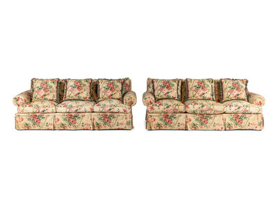 A Pair of Floral Cotton Upholstered Three-Seat Sofas