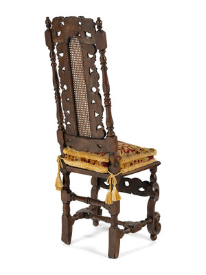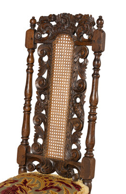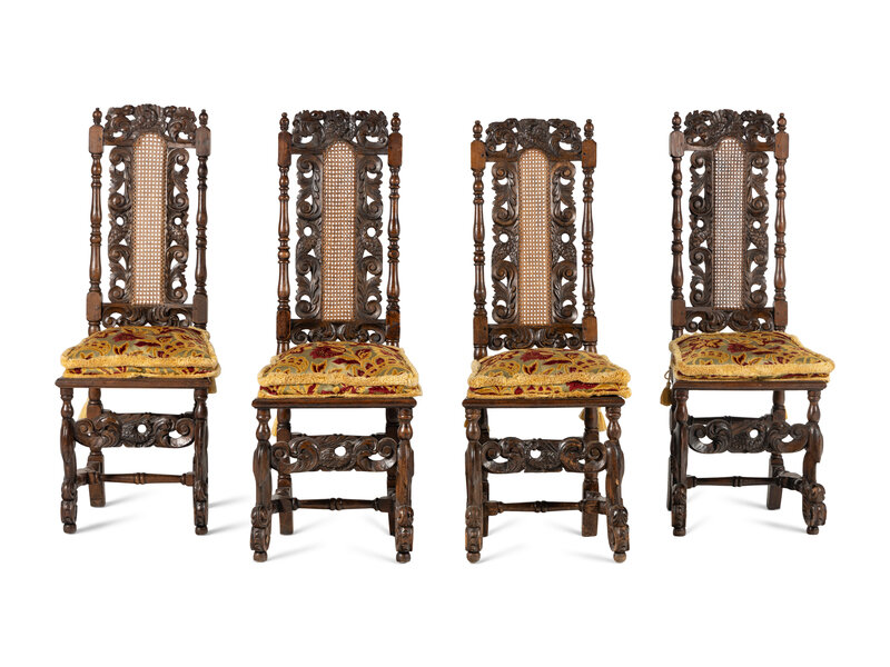 A Set of Four William and Mary Style Carved Oak Dining Chairs