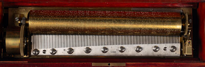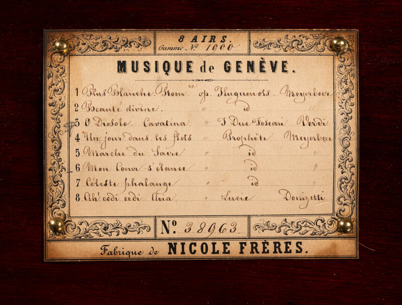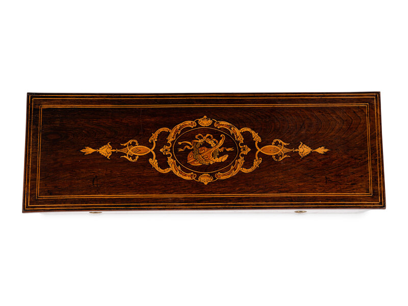 no. 38963, with 13 inch cylinder, playing airs by Meyerbeer, Verdi and Donizetti (Gamme no.1000), in rosewood case with end flap and inlaid lid.