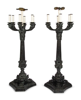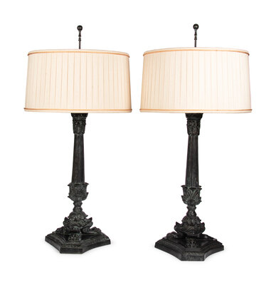 A Pair of Empire Style Patinated Cast Metal Lamps