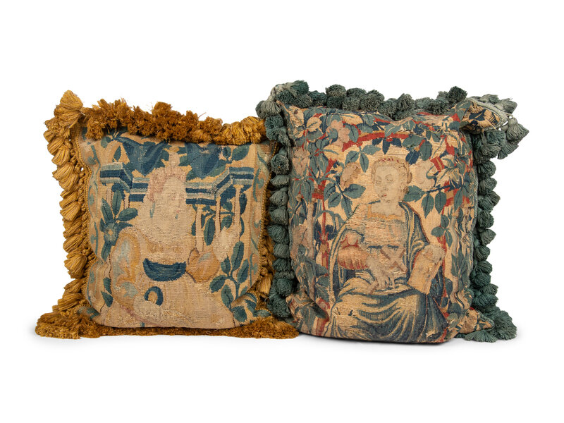 Two Figural Tapestry Throw Pillows