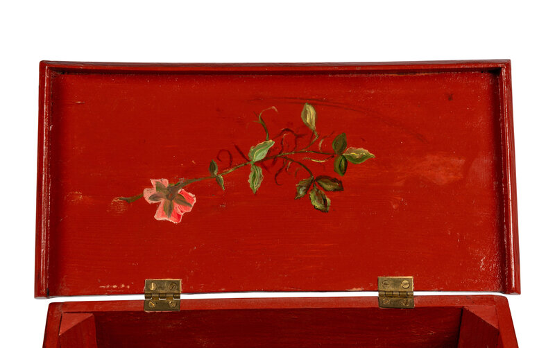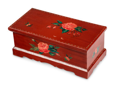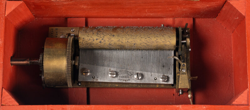 serial no. 2951/34342, with a 4-inch cylinder, the reverse comb stamped F. Rzebitschek / Musikwerk / Fabrik in Prag, in a red painted case with floral decorations.