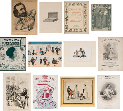 comprising sheet music covers including: Harry's Music Box composed by George William Warren; Dance of Automatons by J.W.Lerman; The Rag Music Box by Arthur J. Jackson; The Musical Box composed by Benedict Roefs; and When Lola Pedals on the Pianola by Harry D. Kerr;