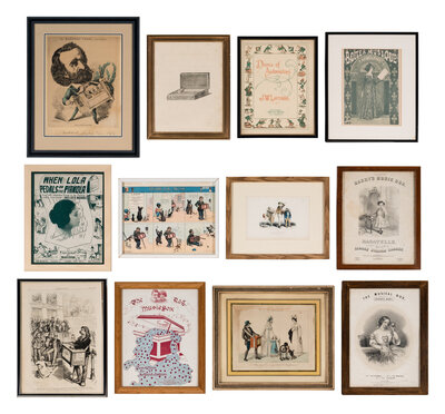 Twelve Framed Mechanical Music Themed Items