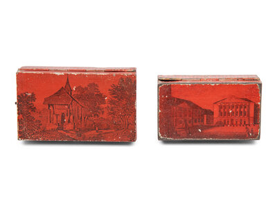 Two Music Boxes in Tin Transfer Cases