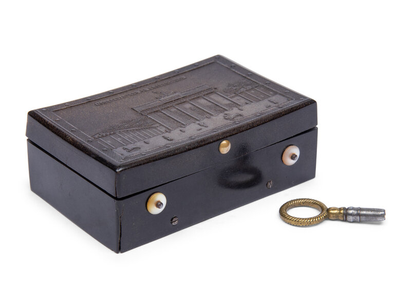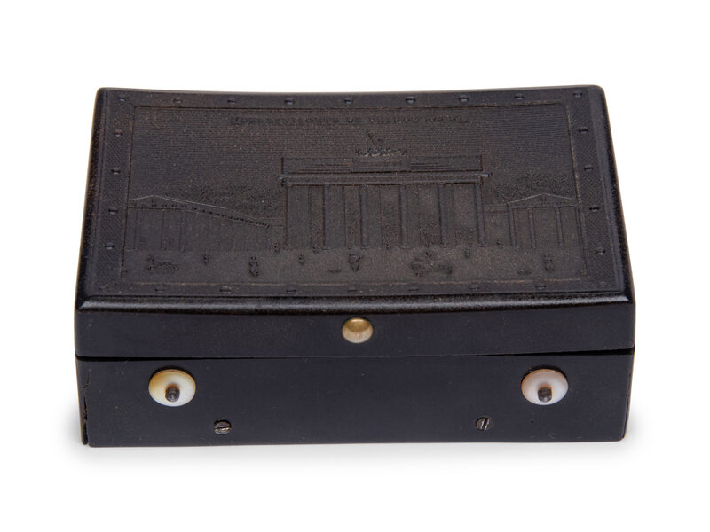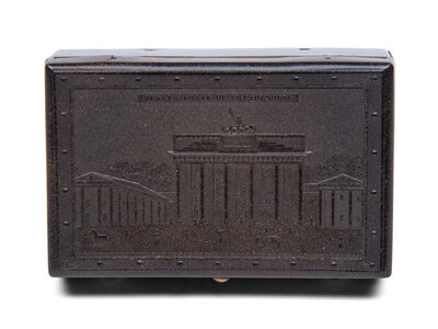 in a Gutta Percha case, with view of the Brandenburg gate on the lid.