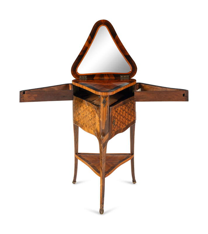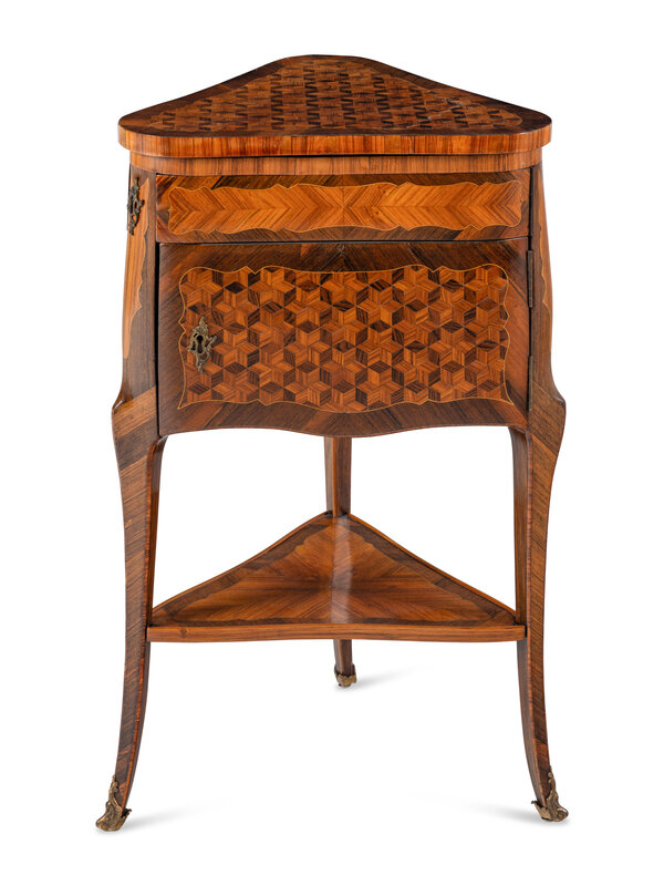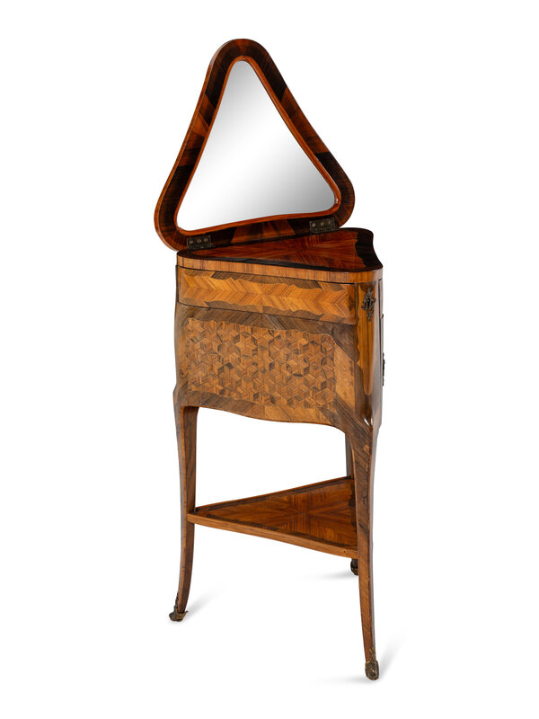 A Louis XV/XVI Transitional Style Parquetry Triangular Poudreuse Mechanique