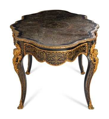 A Napoleon III Gilt Bronze Mounted Boulle Marquetry Center Table