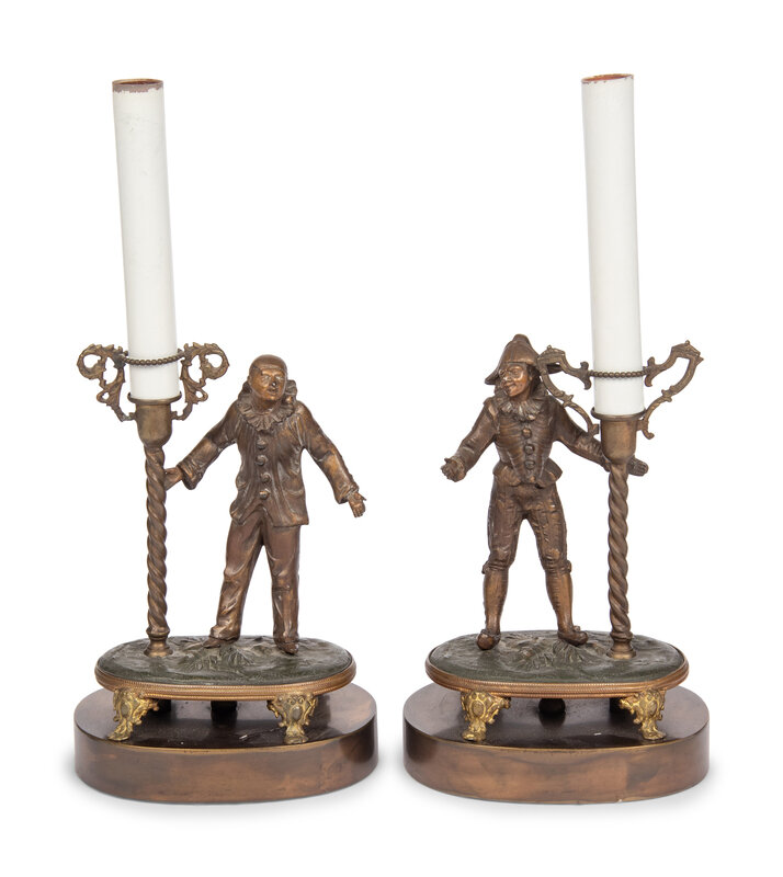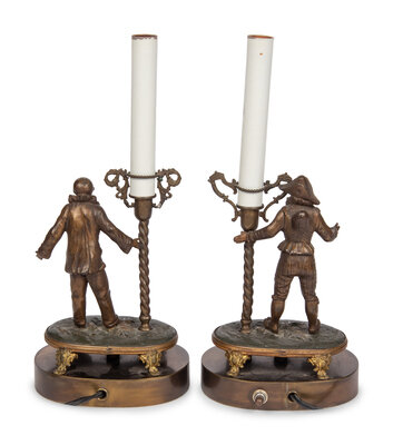 A Pair of Italian Bronze Candlesticks Mounted as Lamps
